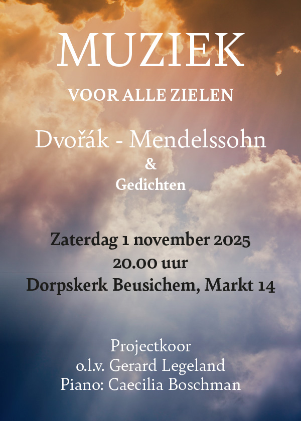 Het leven is kwetsbaar en sterfelijk. Geliefden moeten we loslaten. Herinneringen blijven. Veel mensen hebben behoefte om rond deze tijd stil te staan bij het verlies. Mooie muziek en inspirerende teksten helpen. Met dit concert willen we zo’n gedenkmoment bieden. Naast de muziek van Dvořák en Mendelssohn klinken deze avond ook toepasselijke gedichten rond dit thema.